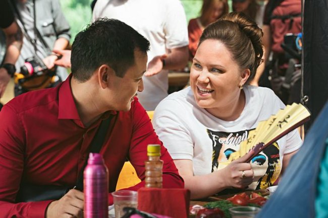 - Я бы назвала «Камызяк» друзьями, скорее. Мы знакомы очень давно. Во время игр в КВН мы просто хорошо общались. Ренат Мухамбаев меня всегда очень веселил, будучи просто КВНщиком. Когда в апреле сложилась ситуация, что мы должны играть вместе любовь-нелюбовь, он мне написал: «Ну что, поработаем?». И мы с ним стали бояться вместе, потому что все вокруг актеры с образованием, а мы вроде как КВНщики без большого киноопыта. Муха когда-то играл в одном кино, а у меня-то вообще подобного опыта не было. Стали обсуждать, как это все будет происходить. Мы друг за друга держались, как хомячки. Были постоянно вместе, и нам все помогали на съемочной площадке, что было очень приятно. Относились, я бы даже сказала, с трепетом, потому что понимали: многих вещей мы просто не знаем. После премьеры наслушались комплиментов, что у нас получилось донести образы, так что профессиональным актерам не уступали. Если люди такое говорят — значит, это огромнейшая победа для нас.