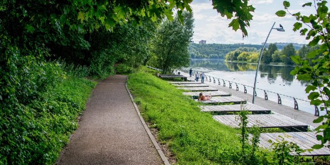 Бегать по набережной в парке «Фили» рекомендуют не только ранним утром, но и вечером. На закате Москва-река и расположенная на противоположном берегу Мневниковская пойма выглядят особенно живописно. Беговой маршрут протянулся на пять километров.