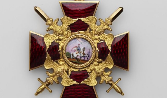 Первый раздел выставки посвящен знакам отличия Российской империи — это редкие награды «с мечами», которые вручали исключительно за военные подвиги: ордена Св. Андрея Первозванного, Св. Александра Невского, Св. Владимира и Св. Анны. Все они отличаются высочайшим уровнем художественного исполнения.
