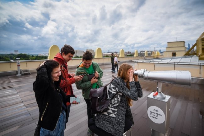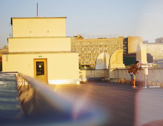 На крыше музея расположена смотровая площадка, на которой установлены бинокуляры с увеличением 25х. Днем через них хорошо видно аллеи парка, Первую Градскую больницу, Храм Христа Спасителя, сталинские высотки, Крымский мост, а вечером — лунные кратеры.