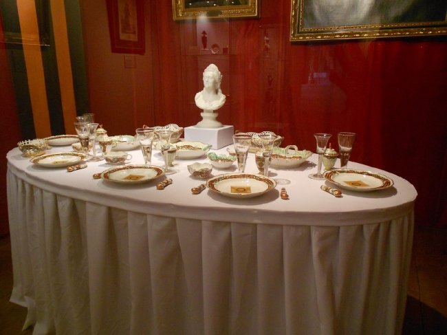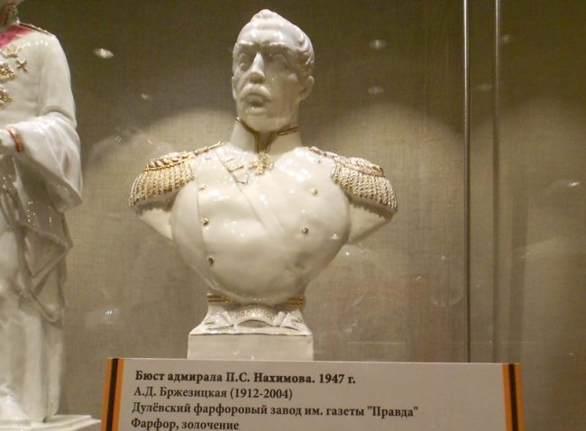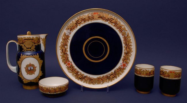 Особый интерес представляет серия стеклянных кубков с портретами героев войны 1812 г., гравировка которых выполнена с живописных работ художника Д. Доу из Военной галереи Зимнего дворца. Дополняют экспозицию тематические произведения фарфора, посвященные юбилейным датам Победы в Великой Отечественной войне: прибор для воды «Победа», сервизы «Орден Победы» и «65 лет Победы».