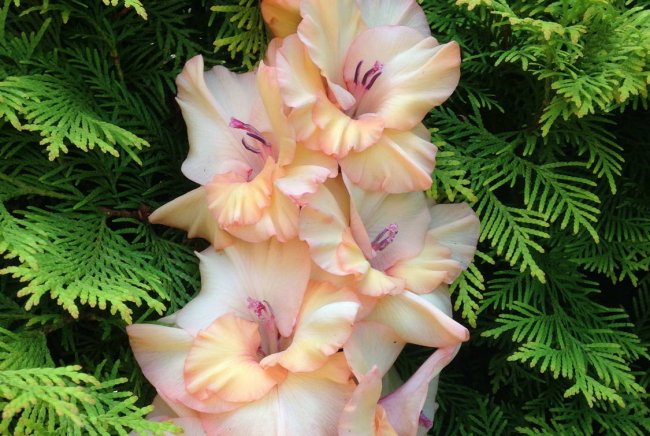 Выставка гладиолусов в «Аптекарском огороде» 2020Для достижения этой цели воину необходимо было повесить на шею клубнелуковицу гладиолуса в качестве амулета. Южноафриканские виды гладиолусов появились в Европе лишь в XVII веке, став родоначальником большинства современных сортов. В 1807 году англичанин Уильям Герберт получил первые межвидовые гибриды гладиолусов, скрестив несколько южноафриканских видов. Именно тогда зародился декоративный интерес к гладиолусам.
