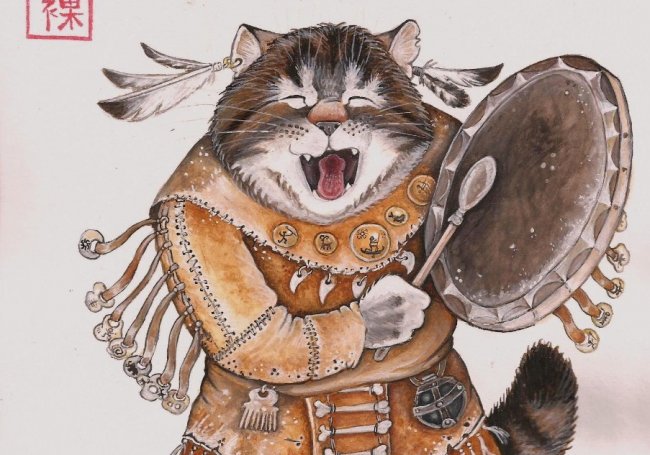 Выставка «Счастье есть!»Если внимательно рассматривать работы художника, можно заметить, что в каждой серии всегда встречается спутник кота — маленький крабик или скорпион. По замыслу автора, в своих рисунках он показывает историю не только своего государства, но и других стран. Чтобы проникнуться атмосферой тепла и уюта, достаточно посмотреть на пару забавных котиков — и уже не захочется оторвать глаз, пока не посмотришь всё.