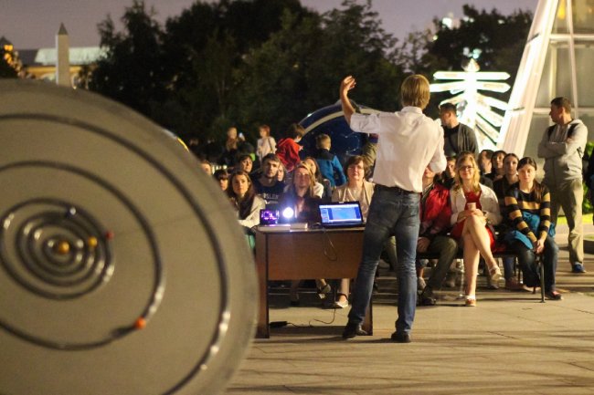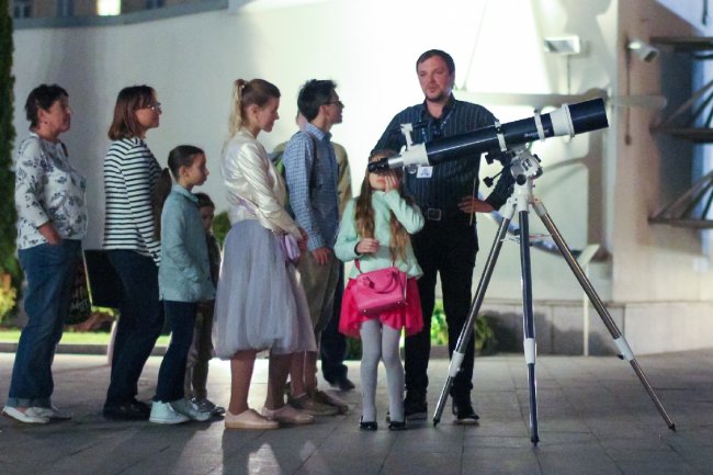 С 20:30 до 22:30 на площадке рядом с павильоном 47 ВДНХ, где будут проходить астрономические наблюдения, специально установят мобильные телескопы. Специалисты Московского Планетария проведут наблюдения, ответят на все вопросы, помогут воспользоваться оптическими приборами, для посетителей во всей красе предстанут Сатурн и Юпитер. Необходимо пройти предварительную регистрацию.