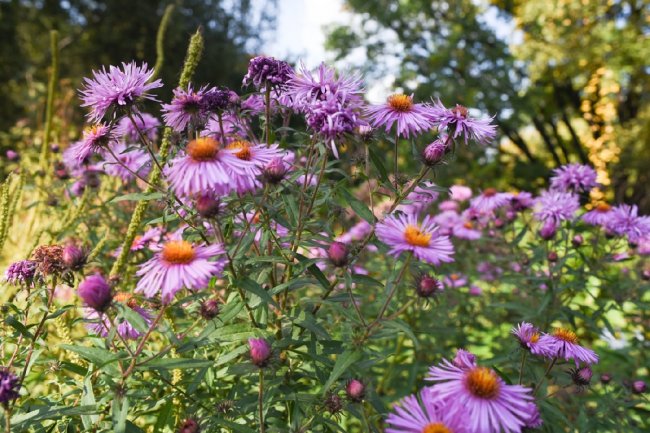 Под открытым небом в саду — все краски осени. Цветут георгины, астры, подсолнухи, верески, гортензии. Сотни видов деревьев и кустарников приобретут самую разнообразную осеннюю окраску перед тем, как осыпать листья.