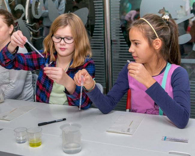 Посетителям постарше предлагается занятие «Биоакустика» (9+) в изобретательской лаборатории «БионикЛаб», где будущие ученые узнают, как говорит и слышит человек, постигнут природу звука и самостоятельно соберут телефон из подручных предметов. Стоимость 200 руб. Начало в 12:00 и 14:00.