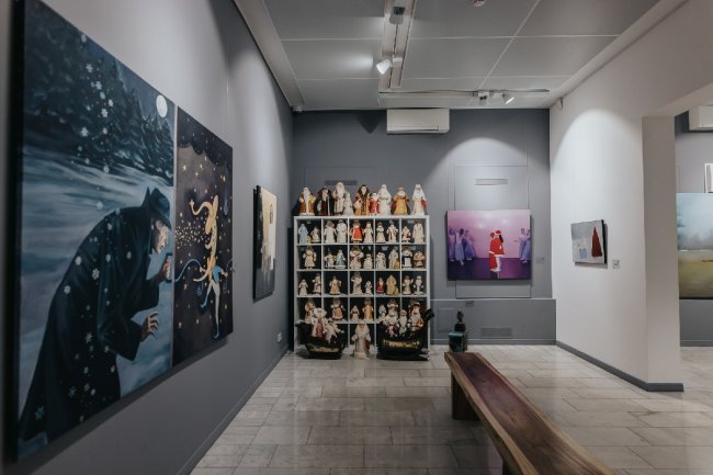Выставка-продажа «Что происходит на свете? А просто зима»Названием выставки стала строка из известного стихотворения Юрия Левитанского «Диалог у новогодней ёлки». Начало года для лирического героя поэта — это период, где пересекаются исходные и финальные точки, когда замыкается круг, заново рождается время. Архетип сезонности является удачной метафорой целостного цикла переходов от одного состояния к другому.