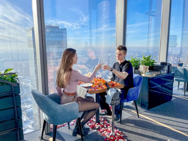 14 февраля 2021 года самая высокая смотровая площадка Европы PANORAMA360 на высоте 89 этажа приглашает на праздничную программу ко Дню святого Валентина.