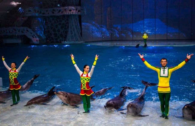 Шоу «Сон в летнюю ночь»Невероятное выступление морских животных — косаток, дельфинов и ластоногих, потрясающие цирковые трюки, красочные декорации, 5D-эффекты и масштабные видеопроекции переносят зрителей в удивительный подводный мир, наполненный волшебством и тайной.
