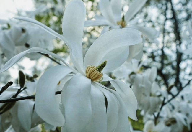 В конце апреля-начале мая их сменят сакуры, яблони, груши, сливы, абрикосы, черешни, миндаль, рябчики, черёмуха. Одновременно распустятся экзотические и теплолюбивые магнолии, которые успешно зимуют в саду благодаря умелому уходу и микроклимату: в центре Москвы всегда теплее, чем в среднем в Центральной России.