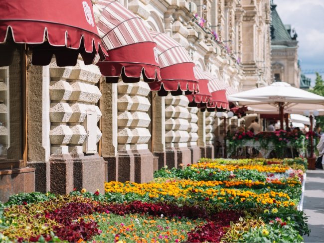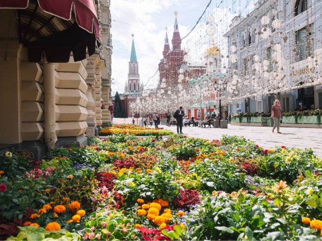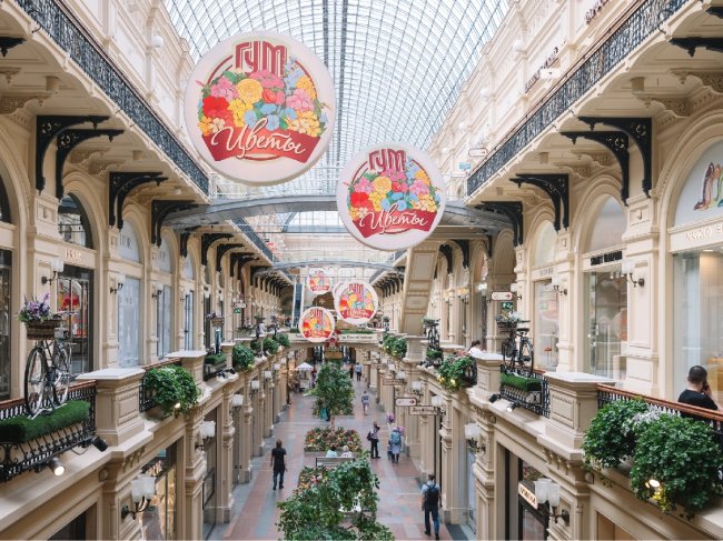 Фестиваль цветов в ГУМе 2021Любоваться цветочным оформлением можно будет не только в дневное время, но и после заката — историческое здание ГУМа подсвечено иллюминацией, так что вечером все выглядит особенно красиво. Чтобы цветы сохраняли красоту и свежесть, будет функционировать специальная система полива с применением уникальной технологии сохранения влаги.