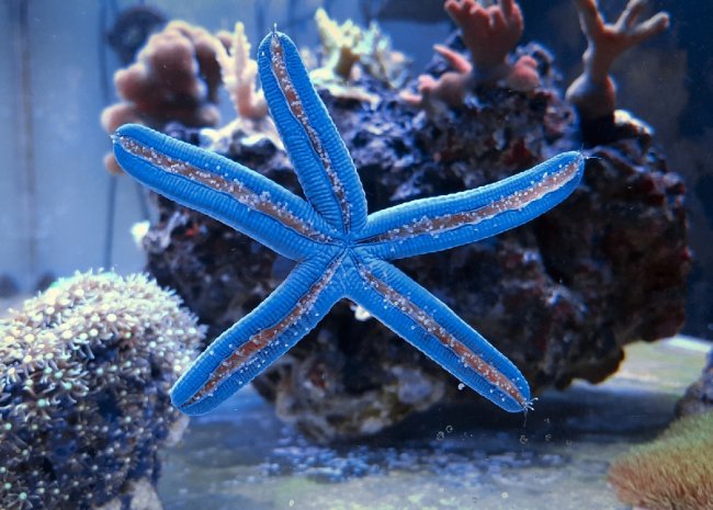 Посетители океанариума смогут не только увидеть тысячи водных обитателей, но и познакомиться с новыми жителями «Москвариума» — морскими звездами. В экспозиции поселились сразу два новых вида: новогвинейская подушка и синяя линкия. Для них ихтиологи воссоздали экосистему тропических вод в специальном открытом аквариуме с мечехвостами (№ 57).