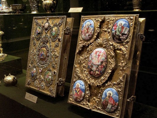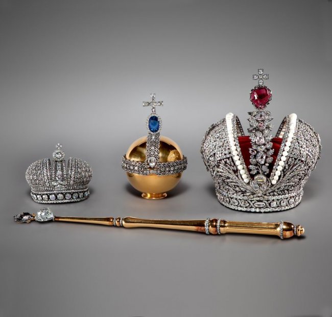 Внутри Алмазного фонда хранятся уникальные сокровища, ценность которых сложно перевести в обычные деньги. Проще сказать, что они бесценны. Вы увидите знаменитые императорские короны, символы самодержавия, фамильные драгоценности царской семьи. Здесь представлены поразительные образцы драгоценных камней и самородков, а также карта нашей страны, выложенная россыпью бриллиантов.