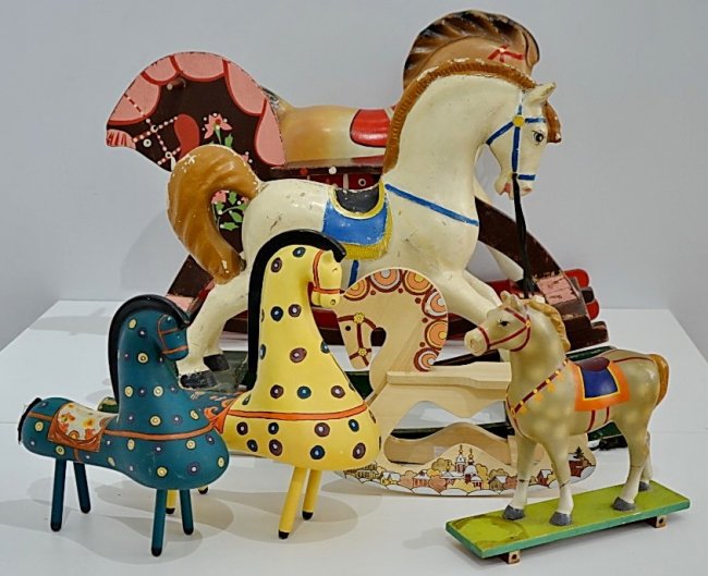 Компанию «зверюшкам» Ольги Рябцевой составят лошадки-качалки и лошадки-каталки из папье-маше и прессованных опилочных масс, изготовленные в 1950-х годах на Загорской фабрике игрушек и культтоваров. Эти самые желанные для многих поколений детей игрушки предоставит Музей советского детства из Сергиева Посада Московской области.