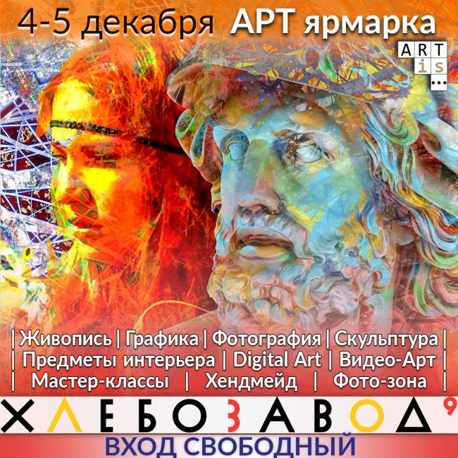 4 и 5 декабря 2021 года в городском пространстве «Хлебозавод 9» пройдёт АРТ-ярмарка «Art is» («Арт из — искусство это…»), на которой будут представлены произведения более 100 талантливых авторов работающих в разных техниках: живопись, графика, скульптуры и элементы декора, интерьерная фотография, видео-арт, хэндмэйд изделия.