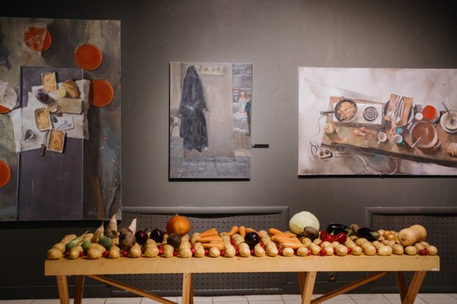 Какие продукты питания оказываются в центре внимания художников, в каких случаях еда — только повод поднять важные для человека и общества темы? Как и над чем смеются, о чем сожалеют и с чем играют, несмотря на табу на игры с едой, авторы? Пространство выставки, как упомянутая выше — книга, будет поделено на главы: современный натюрморт, новые объекты интереса художников, ощущение дома и тоска по нему, любовь, транслируемая через еду, еда и невроз, изобильное и скудное, застолье, игры в еду и с едой.