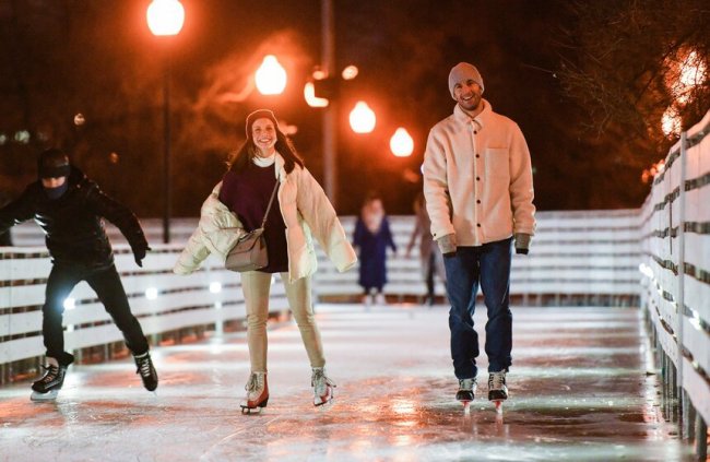 Чаи с натуральными фруктами, глинтвейны на виноградном соке, горячий шоколад с маршмеллоу и коктейли с пряностями помогут согреться в перерывах между ледовыми забегами. Фишка катка в Парке Горького уже третий сезон — зона «Очаг» с живым огнем и скамейками с подогревом, киосками с едой и напитками, фотозоной и рождественской атмосферой.