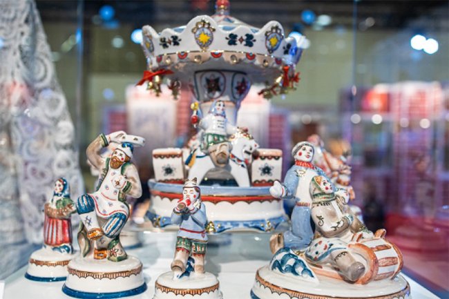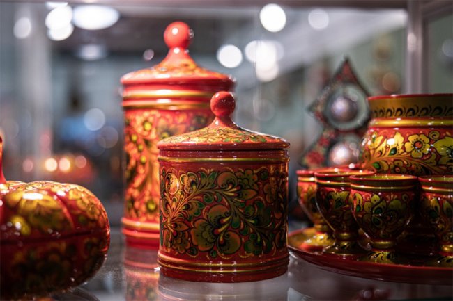 Выставка-ярмарка «ЛАДЬЯ. Зимняя сказка — 2021»По традиции на выставке «ЛАДЬЯ» свои лучшие изделия представляют всемирно известные центры народного искусства: хохломская и городецкая роспись по дереву, гжельский фарфор, великоустюжское черневое серебро, ростовская финифть, вологодское и елецкое кружево, богородская резьба по дереву, кубачинские изделия из серебра, холмогорская и тобольская резная кость, жостовская и нижнетагильская роспись по металлу, скопинская и псковская керамика, торжокское золотное шитье, оружие златоустовских и московских мастеров, павловские столовые приборы и многое другое.