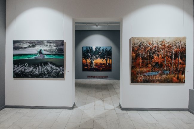 Выставка «Владимир Мигачёв. Холодный фронт»Особое мировосприятие, тревожное и, очевидно, пророческое мироощущение художника находят воплощение в масштабных холстах, несущих невероятную энергию цвета.