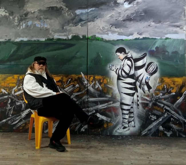 Выставка «Владимир Мигачёв. Холодный фронт»«Я помню время, когда у природы не было плохой погоды. Сейчас почти каждый прогноз погоды это жёлтый, оранжевый, красный уровень опасности, холодный фронт. Время катастроф, спасателей, изменения климата, пандемии, политической напряженности… Когда начал этот проект, я буквально иллюстрировал погодные явления. А потом прочитал книгу Жана-Пьера Дюпюи…», — вспоминает художник и подчёркивает: «Зло не вовне, оно внутри самой цивилизации. Холодный фронт — это не только явление природы, он — в голове человека».