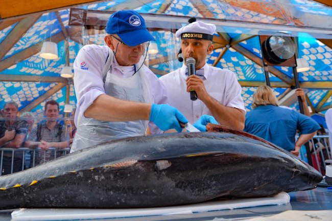 С 27 мая по 5 июня 2022 года в Москве пройдет гастрономический фестиваль «Рыбная неделя», на котором можно познакомиться с кулинарными пристрастиями народов России. Гости смогут попробовать оригинальные рыбные блюда от лучших ресторанов, а также приобрести свежую, соленую, копченую и неизменно вкусную рыбу по приемлемым ценам. Гастрономический фестиваль «Рыбная неделя» 2022Ярмарки и рынки расположатся сразу на 23 площадках, там же пройдут образовательные мастер-классы и запоминающиеся концерты, а в московских акваториях состоятся спортивные соревнования. Образовательные программы и мастер-классы Кулинарные мастер-классы Взрослые гости фестиваля научатся готовить нетривиальные блюда из рыбы и морепродуктов. Шеф-повара поделятся своими секретами и наглядно продемонстрируют умения публике. Кулинарные мастер-классы пройдут и для юных участников фестиваля. Дети смогут вылепить из марципана морского обитателя или раскрасить пряничную рыбку. Оригами Художники и дизайнеры познакомят участников фестиваля с искусством оригами. Под руководством профессионалов своего дела лист бумаги превратится в морскую звезду или корабль. Гастрономический фестиваль «Рыбная неделя» 2022 Сцены Для гостей фестиваля выступят музыкальные коллективы. Желающие могут принять участие в танцевальных мастер-классах или прослушать лекции «Секреты рыболова», на которых научатся вязать рыбацкий узел или готовить снасти. Мастерская живописи Создавать скетчи на скорость или писать морские пейзажи и подводных обитателей научатся все желающие в мастерской живописи. Спортивная программа Неотъемлемой частью фестиваля станет спортивная программа. Москвичей и гостей города ждет гонка на лодках «Дракон». Это стилизованные каноэ, с двух сторон которых сидят гребцы, а на носу — задает ритм барабанщик. Также состоится SUP-регата. На воду одновременно спустятся около 300 серферов. Ярмарки На площадках будет представлена продукция от лучших производителей Дальнего Востока, Якутии, Мурманска, Астрахани, Черноморского побережья и Тихоокеанского региона. Гости могут приобрести свежую, охлажденную, вяленую рыбу или морепродукты. Рестораторы приготовят для гостей кету с зеленым маслом, палтус-дог, копченые на льду креветки и многое другое. Узнать подробности можно на сайте организаторов: Поделиться ссылкой Фотографии события Отзывы про событие гастрономический фестиваль «Рыбная неделя» 2022
