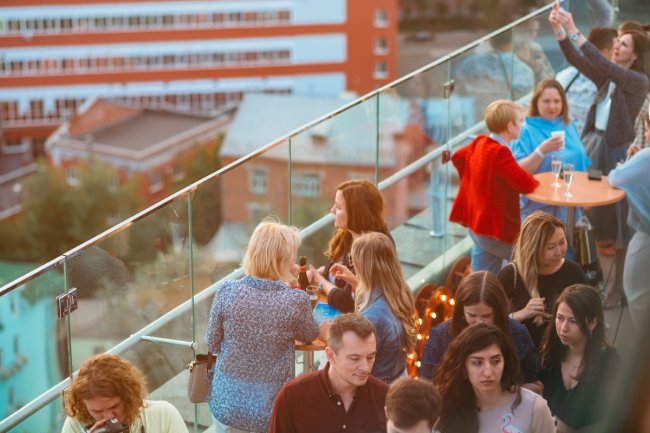 Оглянитесь вокруг. Вас окружают красивые сияющие лица, обворожительные улыбки. За баром звучат оживленные разговоры, а люди заводят новые неожиданные знакомства. Вся крыша окутана магией чудесного единения и вы чувствуете себя частью особого коммьюнити, которое умеет наслаждаться жизнью.