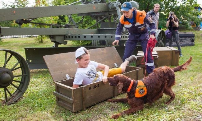 14:00 — 17:00 — Работа волонтерской поисково-кинологической группы «Север», отделение канистерапии (собаки-спасатели), демонстрация трюков и поиск человека или предмета по запаху.