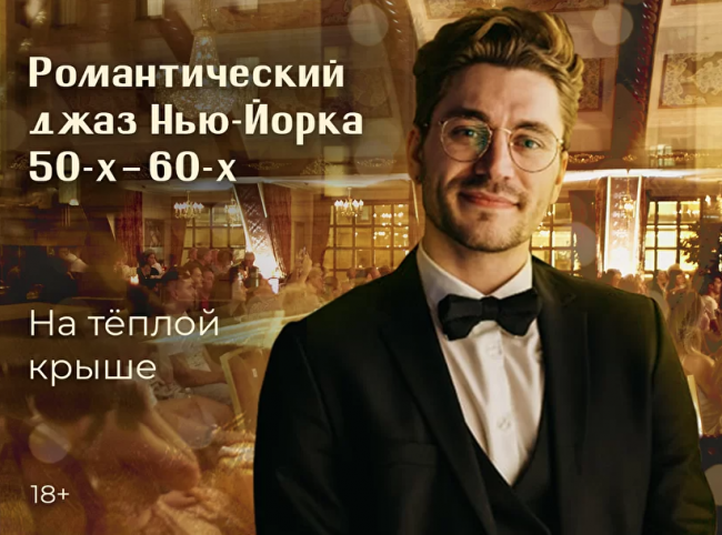 Романтический нью-йоркский джаз 50–60-х на тёплой крыше с верандой в центре Москвы 2022Внимаие: на уютной тёплой крытой крыше с верандой на Кутузовском проспекте вас ждет расслабляющая атмосфера, апероль или согревающий чай и незабываемый осенний джазовый концерт! Крыша спасает от дождя и открывает потрясающий вид на центр Москвы.