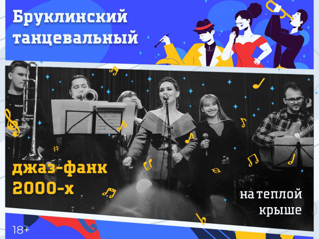 Бруклинский танцевальный джаз-фанк 90–00-х на теплой крыше в центре Москвы 2022На уютной тёплой крытой крыше с верандой на Кутузовском проспекте вас ждет расслабляющая атмосфера, апероль или согревающий чай и незабываемый осенний джазовый концерт! Крыша спасает от дождя и открывает потрясающий вид на центр Москвы.