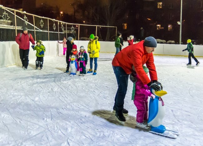 Прокат (с пятницы по воскресенье): коньки для взрослых и детей, помощники фигуристов.
