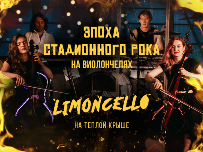 12 и 26 марта 2023 года вас ждет возвращение долгожданной солд-аут программы, потрясающего шоу «Эпоха стадионного рока на виолончелях» в исполнении известной группы — LimonCello. Этот коллектив не ставит себя в жесткие рамки жанров, стилей и эпох, а музыка для них — лишена возраста. На этом концерте вы окунетесь в непередаваемую атмосферу и будете стучать ногами в такт мировым хитам! Долгожданное шоу «Эпоха стадионного рока на виолончелях» на теплой крыше в центре Москвы 2023Внимание! Теплая панорамная крыша — защитит от любой непогоды. Внутри вас ждёт комнатная температура, потрясающий вид на центр Москвы, легендарная уютная атмосфера, заботливый персонал, кухня и бар. На этом концерте в исполнении LimonCello вы услышите легендарные песни U2 и Bon Jovi, Nirvana и AC/DC, Queen и Scorpions. Приготовьтесь, вас ждут мировые рок — хиты в совершенно новом звучании! Квартет, состоящий из двух виолончелей, фортепьяно и ударной установки привнесет в идеальную формулу рок-музыки дополнительный ингредиент в виде смычковых пассажей, bariolage и detache. И даже партия тяжелой электрогитары ляжет на хрупкие плечи виолончельных нимф. Вас ждут оригинальные и мощные аранжировки — сердце этого шоу! А настроения и заряда энергии, полученного после концерта LimonCello, хватит на неделю вперед. Виолончельный рок уже стал самостоятельным жанром с появлением таких групп, как Apocalyptica и 2cellos, а теперь и можно похвастаться группой такого же уровня у нас, в России. Музыкальная программа LimonCello — это проекция классического французского виолончельного дуэта на современную рок-музыку. Это именно то, что может дать серьезное академическое образование в тандеме с любовью к классическому року. Даты: 12 марта в 17:00 (6 ) 26 марта в 15:00 (6 ) и 19:00 (18 ) Где: Крыша Торгового центра «Цветной» (OMEGA ROOFTOP), Цветной бульвар, дом 15, стр. 1, этаж 7 Узнать подробности можно на сайте организаторов: Поделиться ссылкой Фотографии события Отзывы про событие долгожданное шоу «Эпоха стадионного рока на виолончелях» на теплой крыше в центре Москвы 2023
