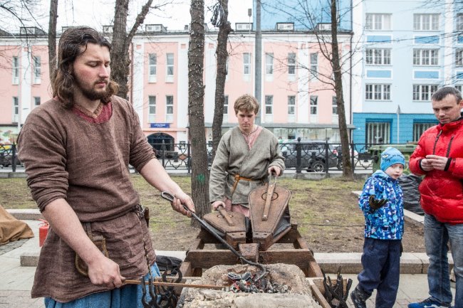 реконструкции и мастер-классы народных промыслов — кузнечное и гончарное дело, чеканка, создание пасхальных сувениров;