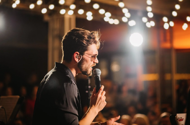 И все это в исполнении очаровательного бархатного голоса восходящей джазовой звезды и потрясающего фронтмена — Антона Ярославского вместе с 7 выдающимися музыкантами джазового бэнда.