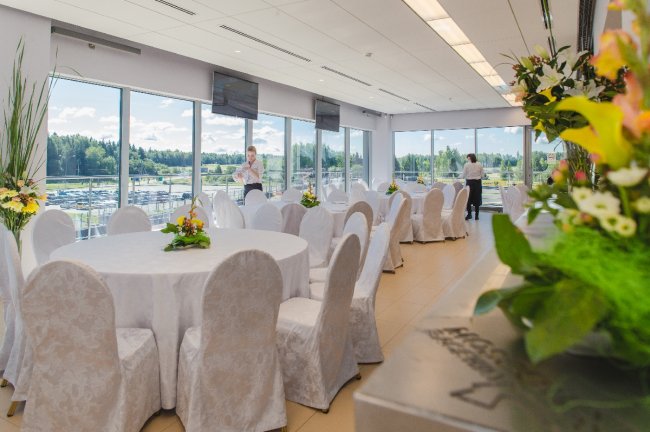 место в VIP-ложе с видом на стартовую прямую, завтра и обед, включая алкогольные напитки