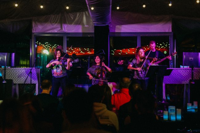 На атмосферной крыше вместе с впечатляющим пением электроскрипок и бешеным тембром электровиолончели вас захватит узнаваемый авторский стиль «Rammstein»: агрессивный индастриал-метал с жесткими ритмами, взрывные сэмплы в духе «electronic body music», яркие элементы альтернативы и электронного индастриала. И все это на струнных электронных инструментах в необычном жанре classical crossover, завоевавшем мировое признание.
