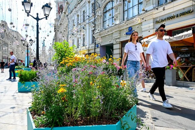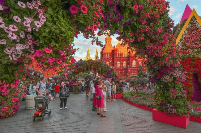 Также на Никольской улице расположится галерея из 14 арок, вдохновленных парком Miracle Garden в Дубае, с яркими композициями из 5,5 тысячи разноцветных петуний.