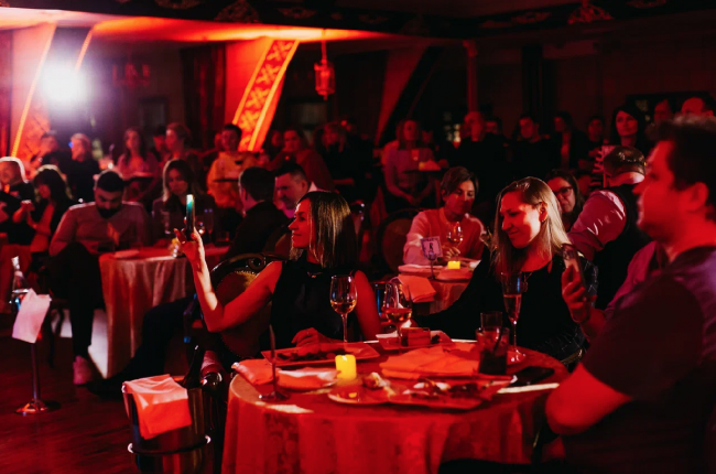 Только представьте: изысканный вечер на крыше известной высотки. Здесь приглушен свет, празднично мерцают свечи. Роскошное убранство крыши напоминает таинственный дворец, а на открытой веранде люди с бокалами в руках встречают волшебный малиновый закат.