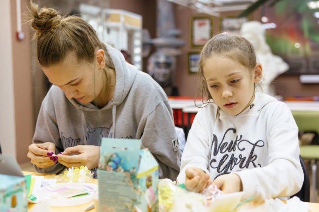 С 11:00 до 12:00 и с 12:00 до 13:00 проведут занятия для старшей группы (14+) − творческие наставники помогут сделать поздравительные открытки в двух техниках — скрапбукинг и с вложением. А с 13:00 до 14:00 и с 14:00 до 15:00 ребята помладше (6+) смастерят трогательные поделки-украшения — броши и бусы. Бесплатно, по записи по телефону преподавателя.