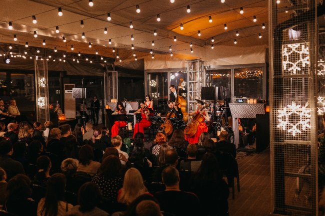 Этой белоснежной зимой на теплые крыши Москвы возвращаются уникальные рождественские концерты, которые Roofevents проводит только один раз в году. Легендарные новогодние песни в звучании джаза и симфонические хиты из любимых фильмов подарят ощущение настоящего волшебства и долгожданного праздника. Гостей ждёт уютная атмосфера, потрясающие виды на зимний город, праздничное убранство зала и живая музыка, где каждая нота пропитана духом Рождества.