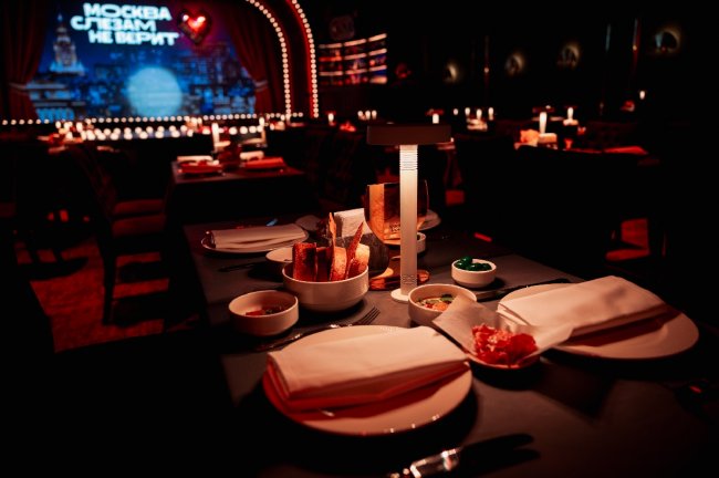 Гастрономический мюзикл «Москва слезам не верит»В основе сюжета мюзикла — история любви Сони и Макса — главных героев из небольшого провинциального города, мечтающих покорить Столицу. Действие переносит зрителя в ностальгическую атмосферу Москвы эпохи великих надежд и начинаний. Влюбленные мечтают о карьере на большой сцене, но Москва круто меняет их жизнь.