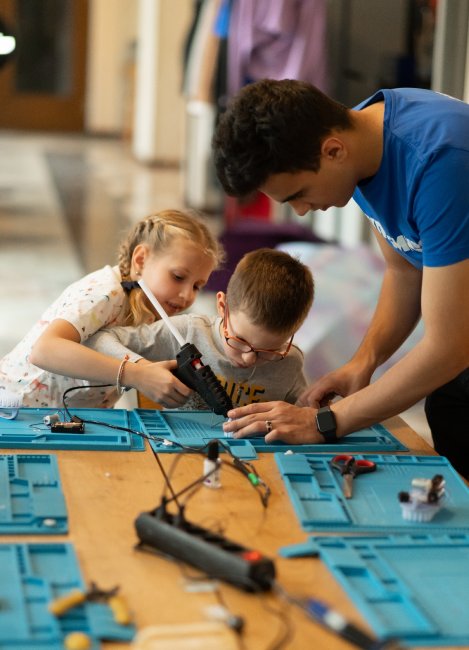 Это может быть разовый мастер-класс, длительный курс или лагерь, в котором в процессе обучения юные изобретатели попадут на увлекательную экскурсию по одному из лучших музеев Москвы с настоящими ракетами и спутниками. Ребятам расскажут об истории космоса и главных мировых открытиях.