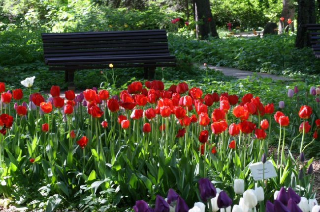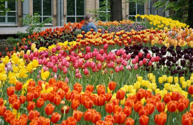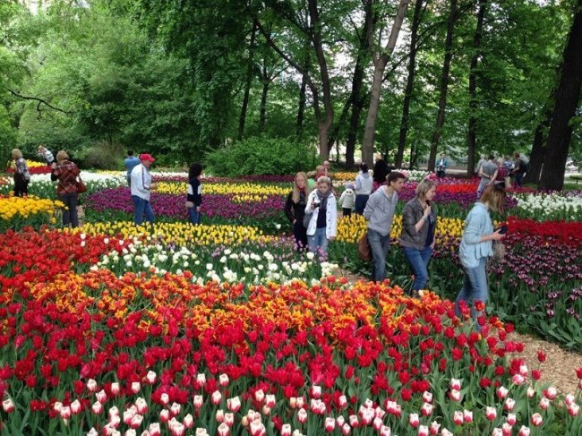 В начале мая распустятся яблони, груши, сливы, абрикосы, черешни, миндаль, рябчики, черёмуха. В середине мая — пик цветения 100 тысяч тюльпанов, в конце месяца — громадные пионы, сирень и рододендроны.