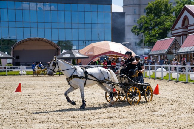 Чемпионат и Первенство Москвы по драйвингу 2024Драйвинг — это соревнования экипажей, запряженных одной, двумя или четырьмя лошадьми в зависимости от класса упряжек. Драйвинг отличается от других видов конных дисциплин своей зрелищностью. Управляют экипажами два человека — драйвер и грум, который помогает драйверу держать баланс экипажа, вписываться задними колесами в повороты, а также указывает дорогу. Внешний вид — красивая особенность этой дисциплины. Стиль экипажа должен соответствовать стилю упряжи, одежде драйвера и грума. Существуют английский, венгерский и русский стили одежды. Погодные условия также влияют на выбор внешнего вида.