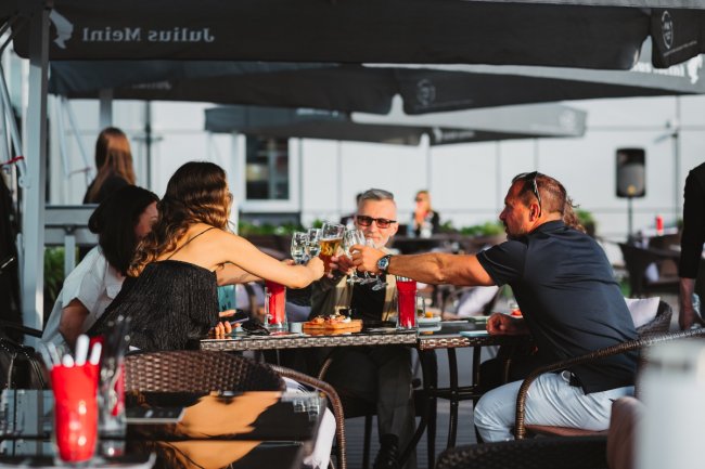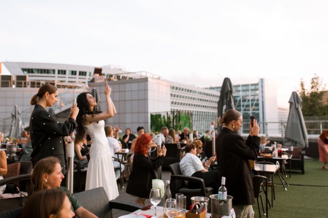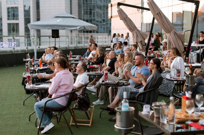 Изысканный ужин плавно перетекает в музыкальный праздник жизни. Память телефона уже заполнена атмосферными фотографиями, и теперь хочется просто расслабиться под нежные звуки джаза. Внизу загорается яркими огнями столица, а уютный плед ласкает плечи. Именно так ощущаются концентрированное наслаждение и удивительная свобода на открытой крыше Roofevents.