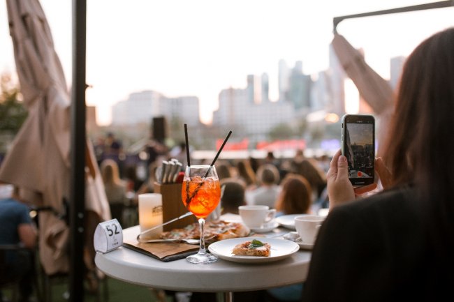 Всё это — на фоне захватывающего вида на Сити в лучах заходящего солнца. Гостеприимная крыша в сердце столицы напоминает фешенебельный заокеанский джаз-клуб: между аккуратными столиками снуют официанты, среди цветов и гирлянд прогуливаются гости. Можно танцевать прямо рядом с артистами или расположиться за столом чуть поодаль.