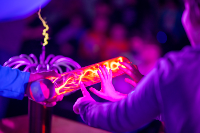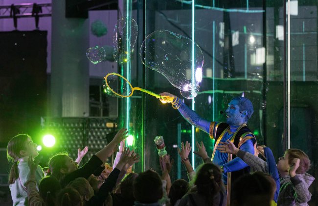 Гости праздника смогут потрогать тесла-молнию и подержать в руках огонь, который не обжигает, сотворить облако и повеселиться на бумажной дискотеке. Вместе со Снегурочкой, юные любители приключений узнают о том, что объединившись, можно преодолеть любые преграды, а помогут в этом любовь, доброта и смелость.