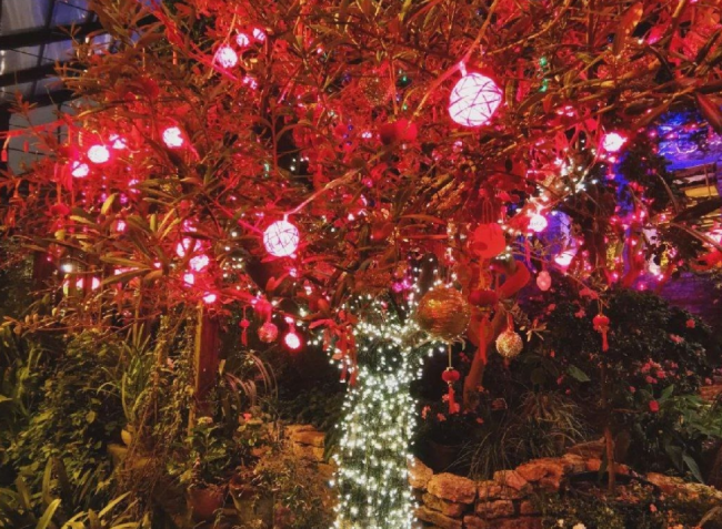 Субтропическая оранжерея преобразится в соответствии с традициями Китайского Нового года: сотни красных фонариков, гирлянды и другие украшения среди цветущих орхидей и азалий.