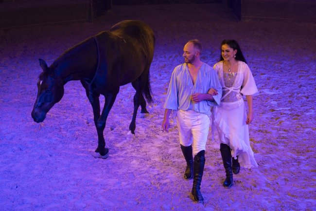Фото: vdnh.ruПостановка объединяет в себе глубокую лирическую линию, сложнейшие трюки, виртуозную работу с лошадьми и театрализованное действие. Атмосферу волшебства дополняют исторические костюмы, продуманная хореография и современные видеомэппинг-технологии.