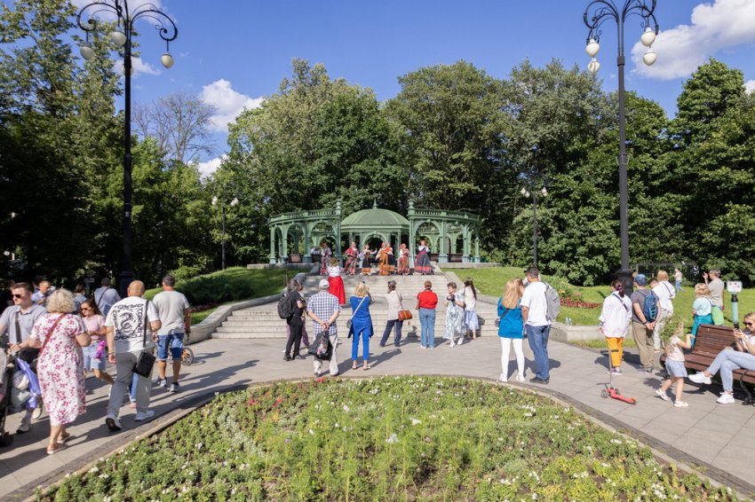 Также здесь пришедшие смогут послушать выступления фольклорных ансамблей, народных и творческих коллективов, увидеть народные постановки в исполнении Русского Имперского балета им. Гидеминаса Таранды и принять участие в купальском шествии до Садового пруда.