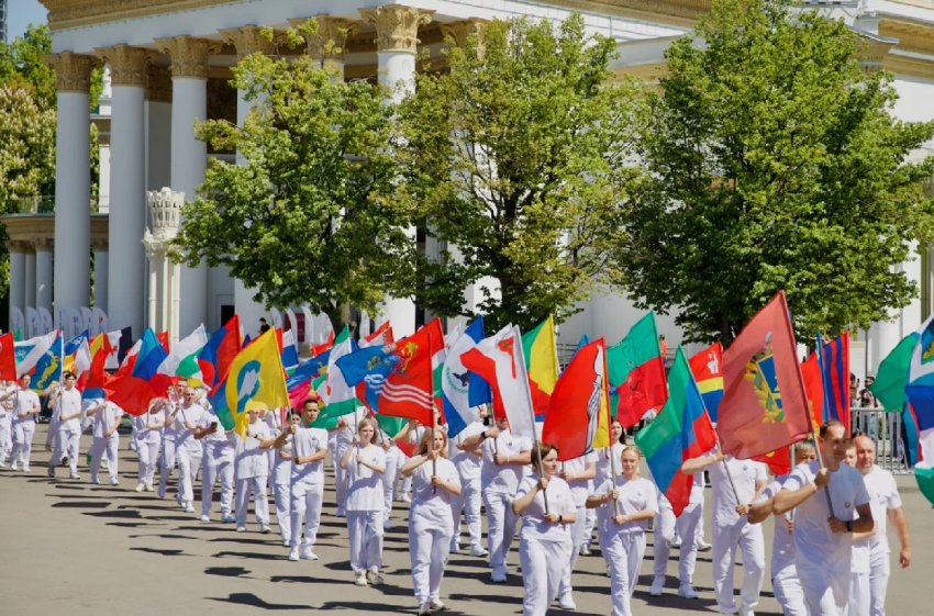 В шествии на ВДНХ примут участие олимпийские и паралимпийские чемпионы, представители спортивных федераций, спортивных обществ, госкорпораций, учителя физкультуры, обладатели знаков ГТО, спортивные семьи, участники специальной военной операции и люди серебряного возраста — всего около 3 000 человек.